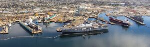 National Steel & Shipbuilding Company (NASSCO) San Diego, CA displays an older and smaller shipyard lay-out than a new Chinese shipyard featured below (PHOTO: NASSCO)